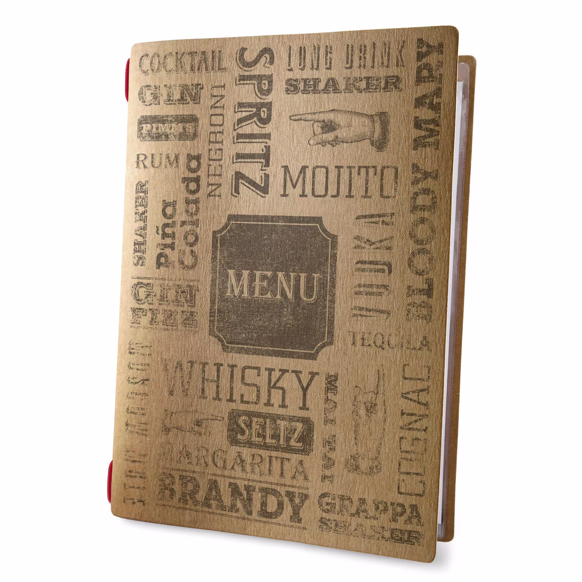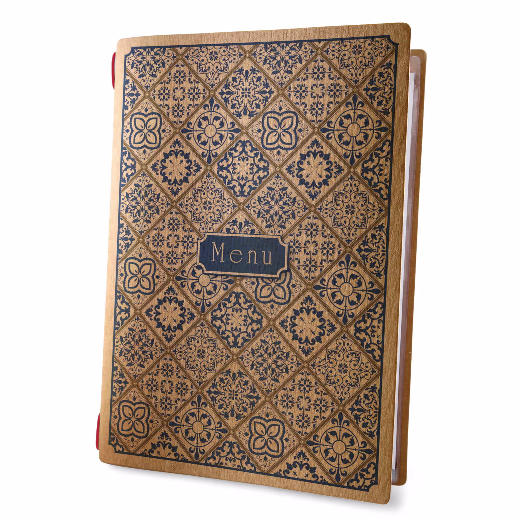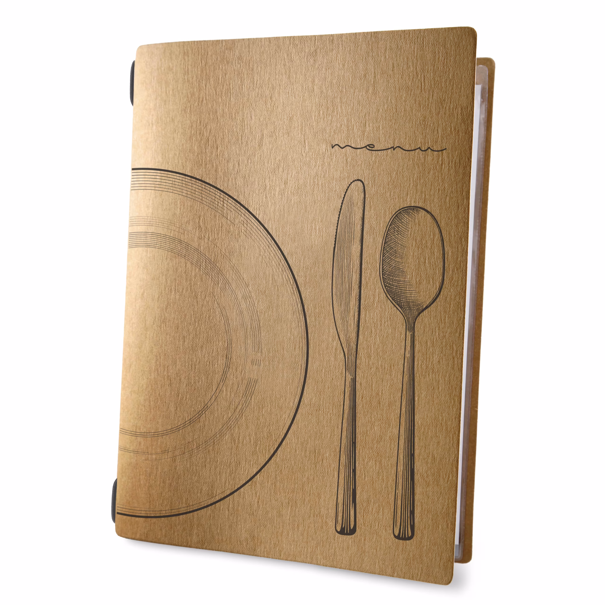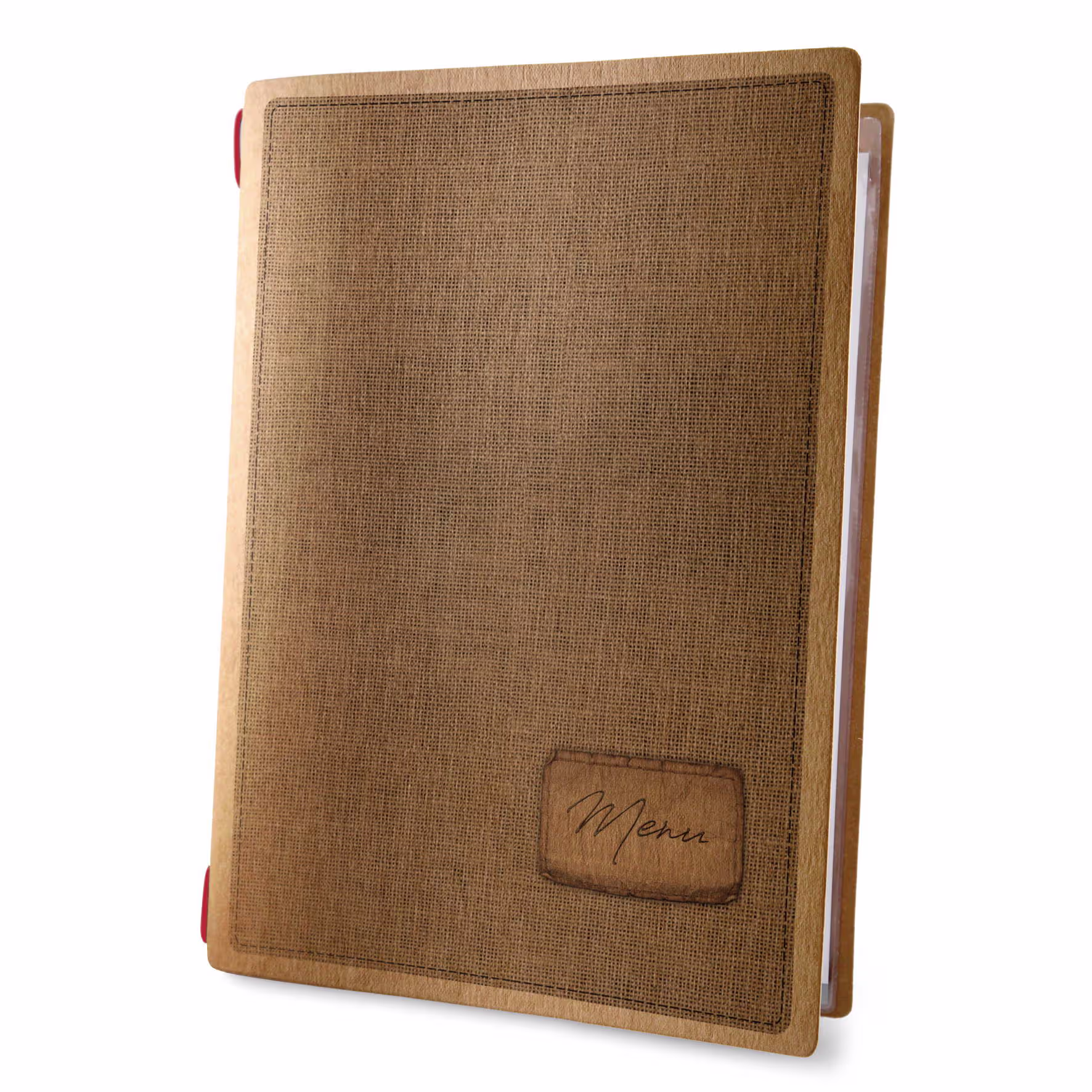 Menu cover za profesionalnu upotrebu, izrađen od eco kože s teksturom drva.