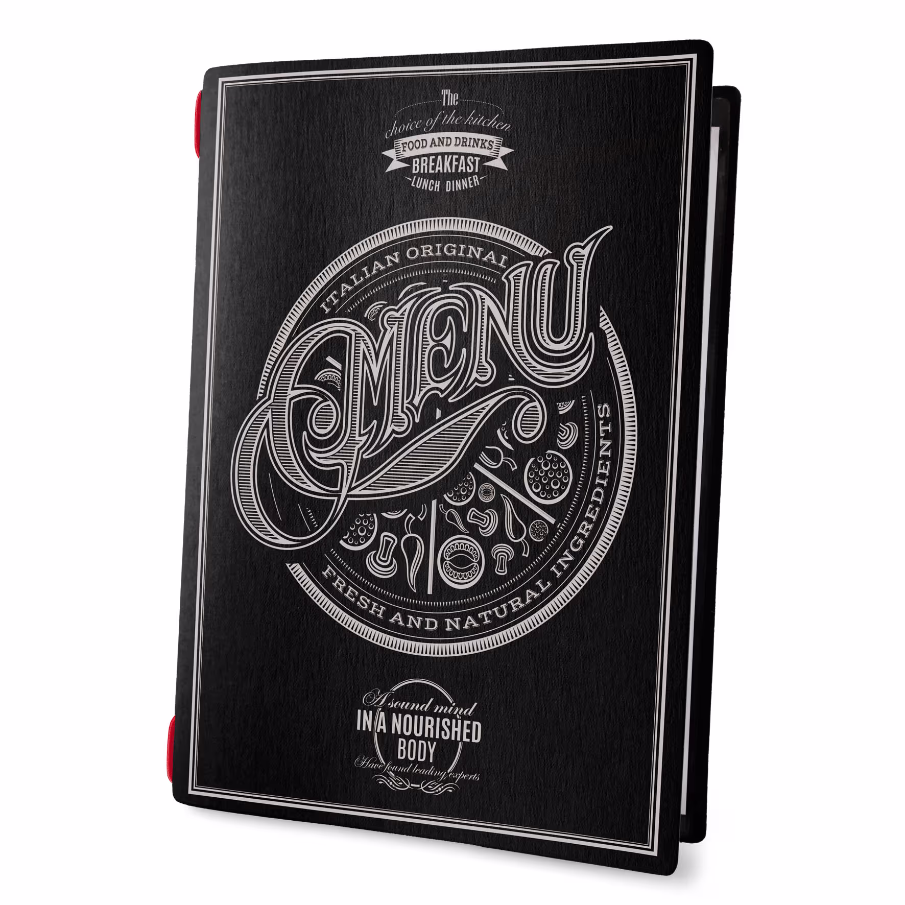 Menu cover izrađen od eco kože s čvrstim, prošivenim koricama.