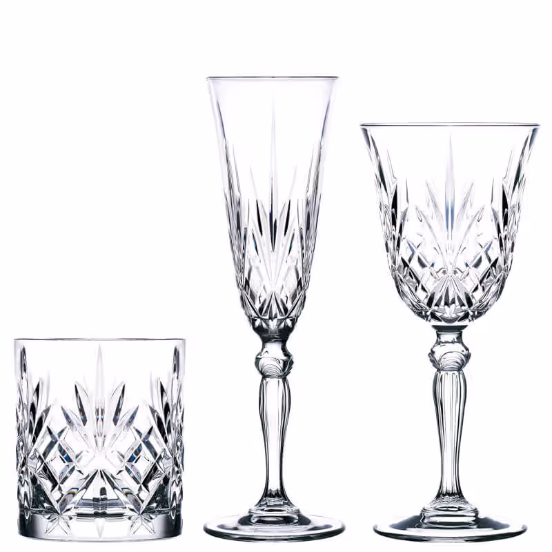 Svaka čaša reflektira svjetlost i stvara efekt kristalne krune.